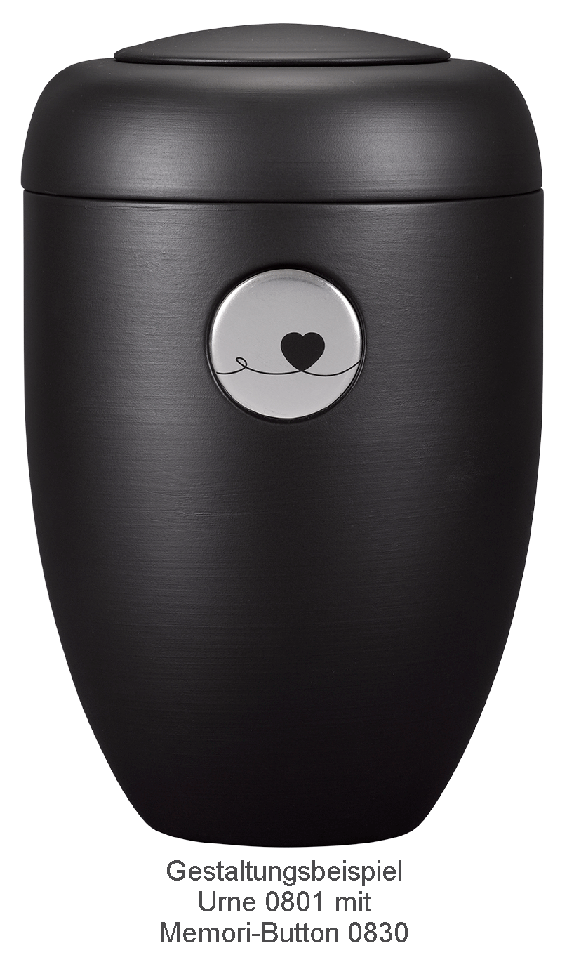Die Farben dieser magnetischen Memori-Buttons sind perfekt auf die neue Farbkollektion der Memori-Urnen-Modelle (crèmeweiß, schwarz, aubergine und petrol) abgestimmt. Die Buttons passen genau in die Aussparung der Urnen. Erhältlich in den Grundtönen aubergine, petrol und silber mit Herz, Kreuz oder "Love"-Schriftzug.