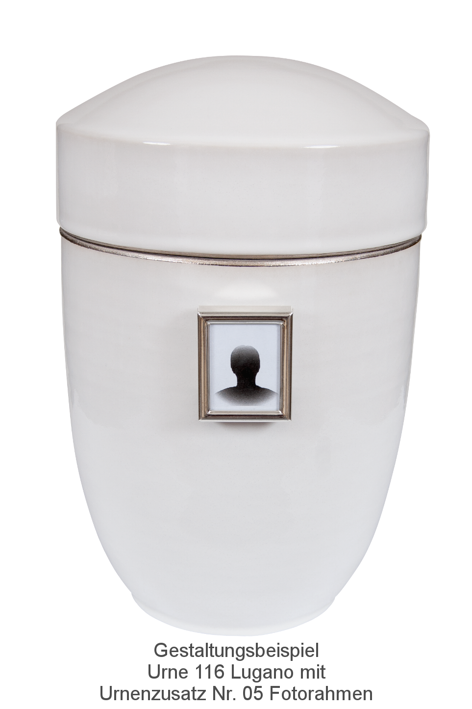 Urne 116 Lugano, Keramik, weiß glänzend mit Echtplatinrand