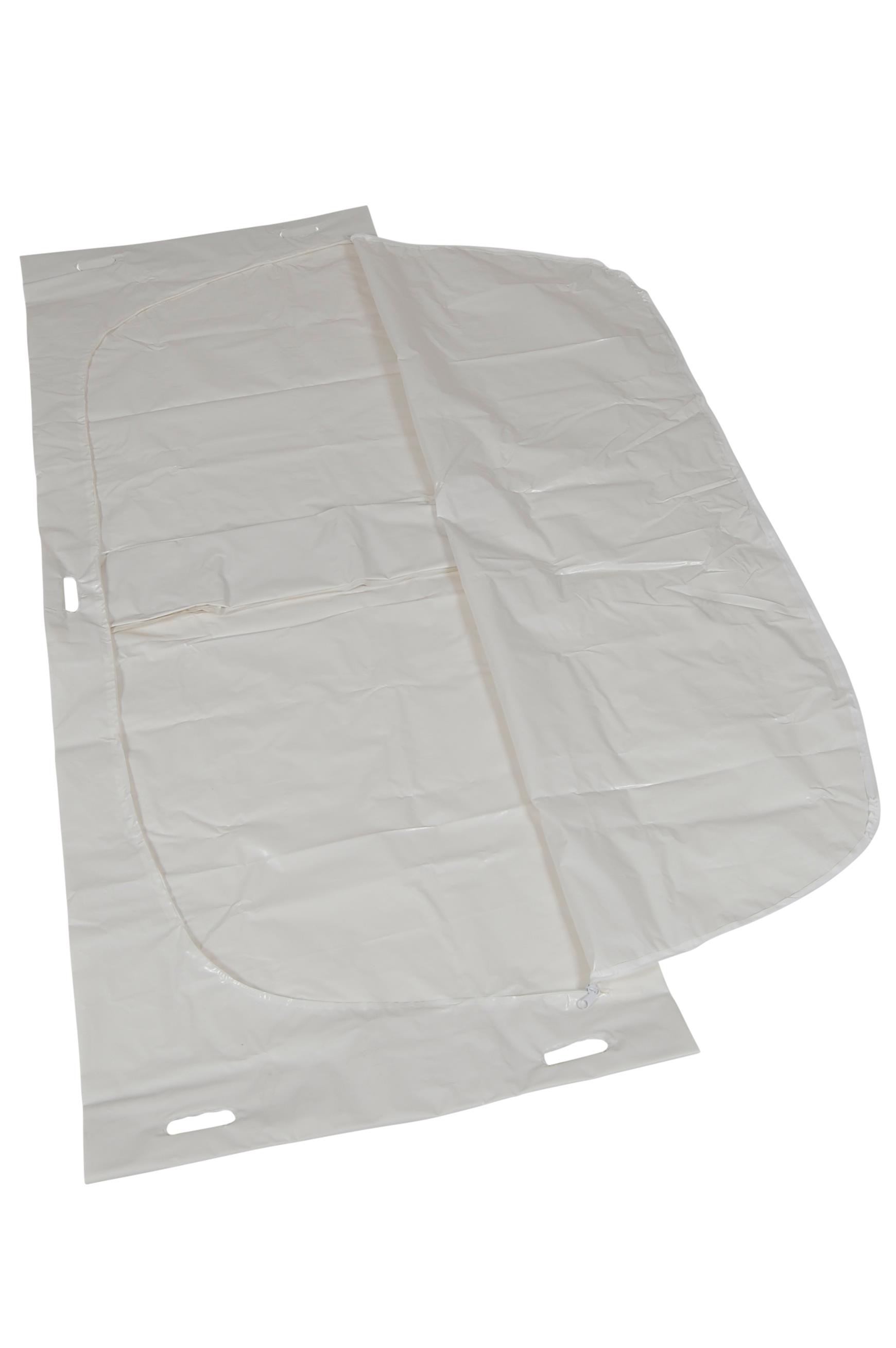 - Leichenhülle mit halbrunden Reißverschluss und 6 ausgestanzten Tragegriffen.